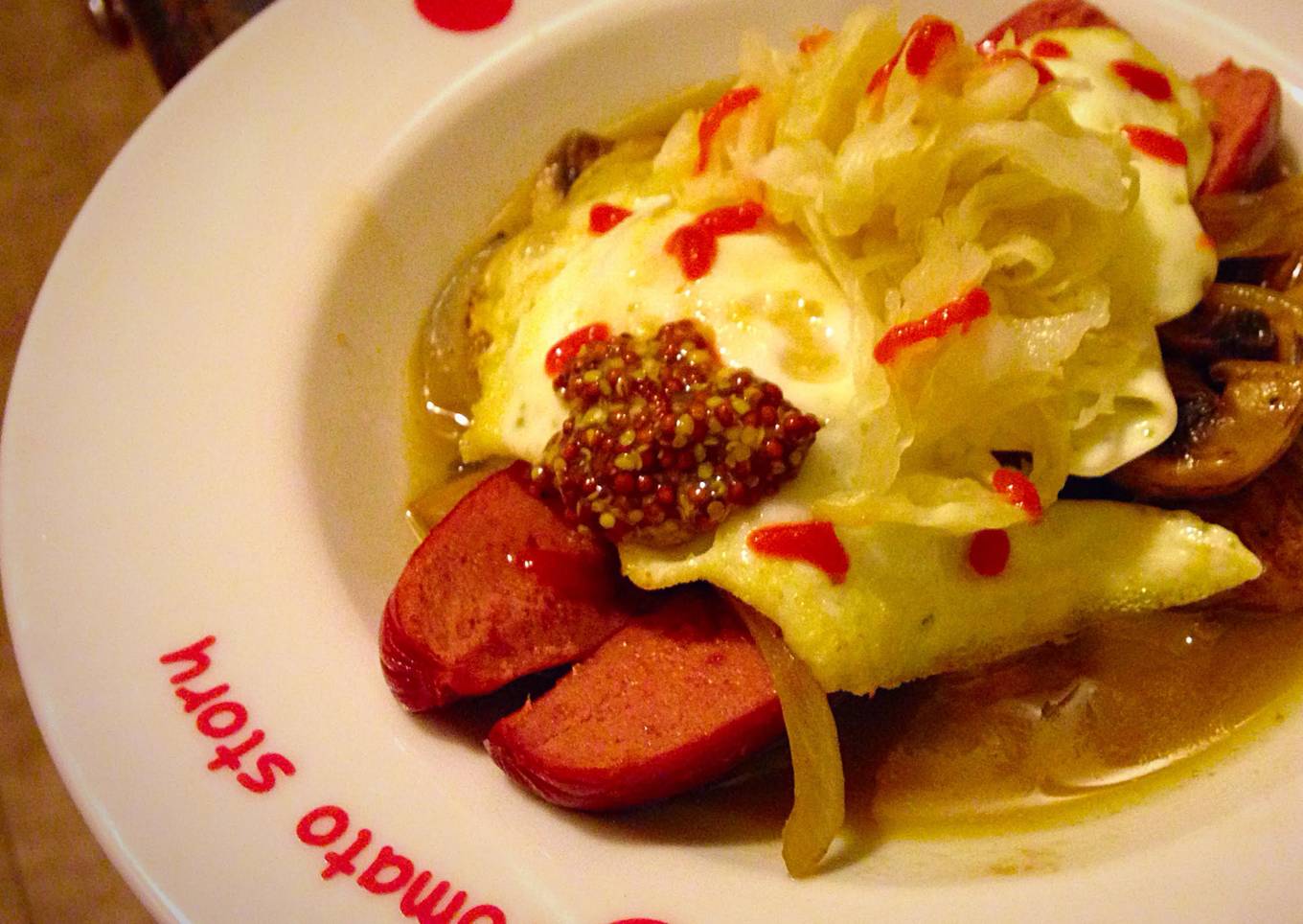 - Added some condiments: sauerkraut, sriracha, and a small dab of grain mustard.