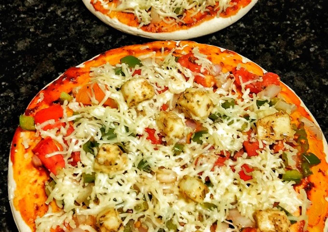 - Now ready your cheese tandoori paneer pizza
