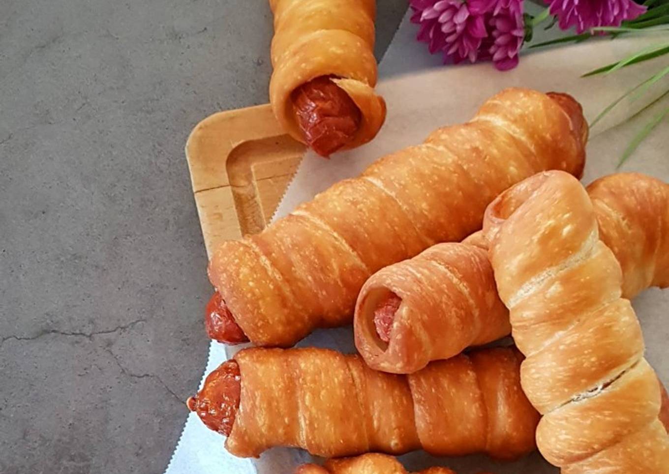 - Roll dough into long pieces & wrap each piece around hotdogs/sausages. Leave to rest for 15 minutes then, deep fry over medium low heat until golden brown. Serve warm.