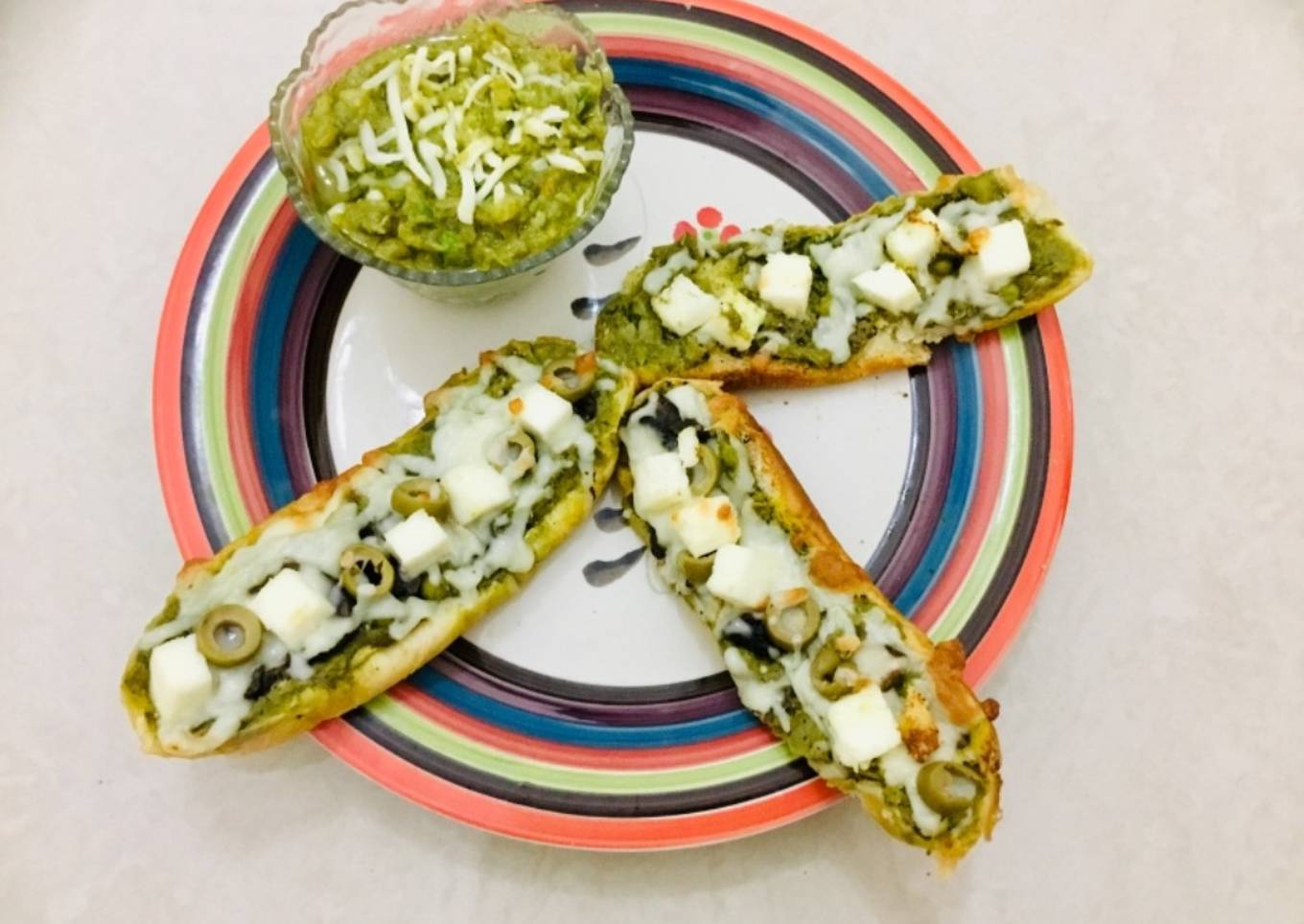 - Afterward Apply green bhaji on it,put mushroom on it,