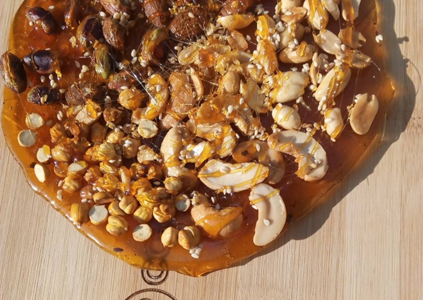 Mixed nuts chikki pizza (chizza)